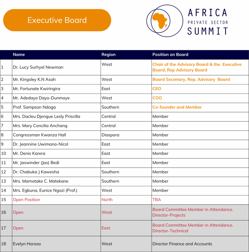 Chairperson – Africa Private Sector Summit (APSS) Executive Board