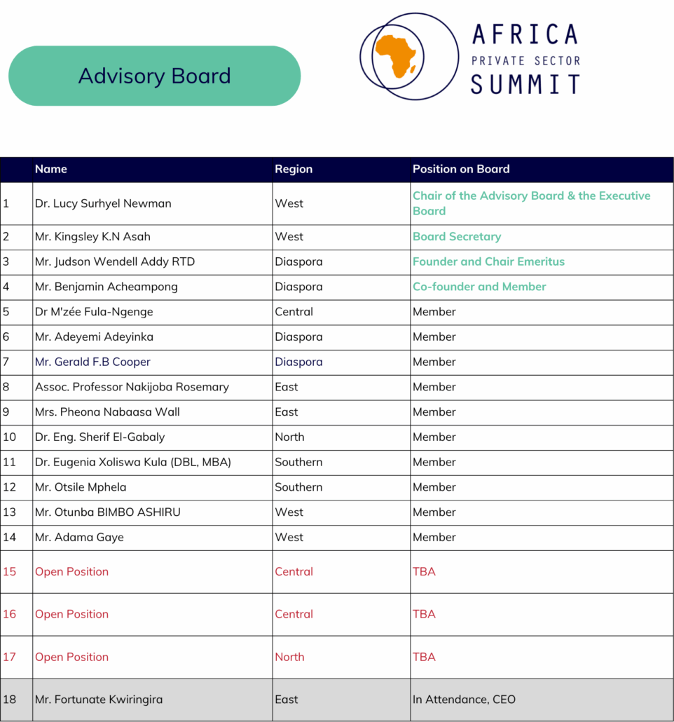 Chairperson– Africa Private Sector Summit – APSS Advisory Board